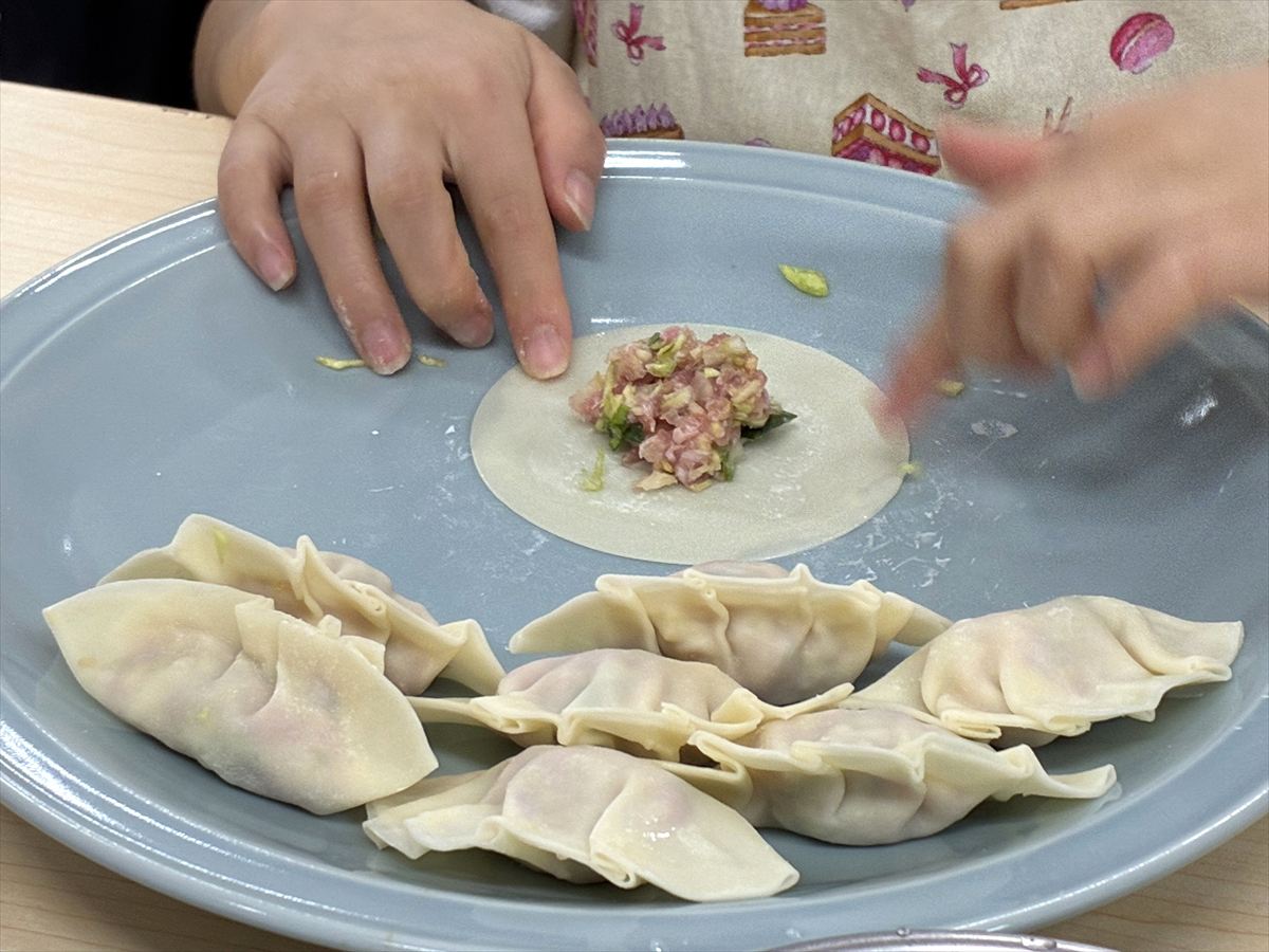 2月のわいわいクッキングでは、子どもたちが餃子と棒棒鶏を作りました。 子どもたちが包んだ餃子はとても上手にできていました。
