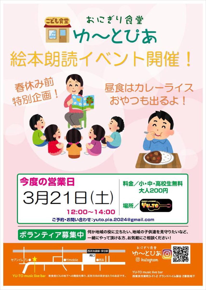 子ども食堂ゆーとぴあより、3月開催のお知らせです😊