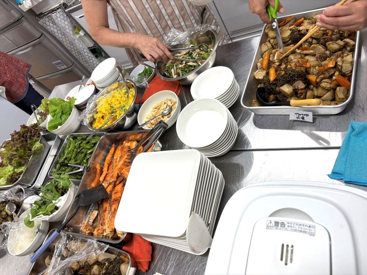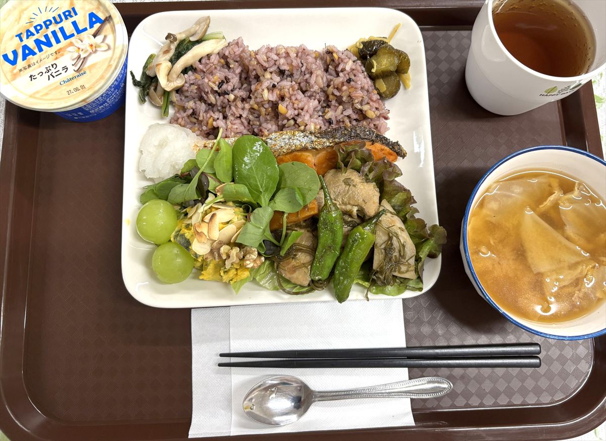 メニューは、鮭の塩焼き、里芋と豚肉の照り煮、かぼちゃのクリーミーサラダ、