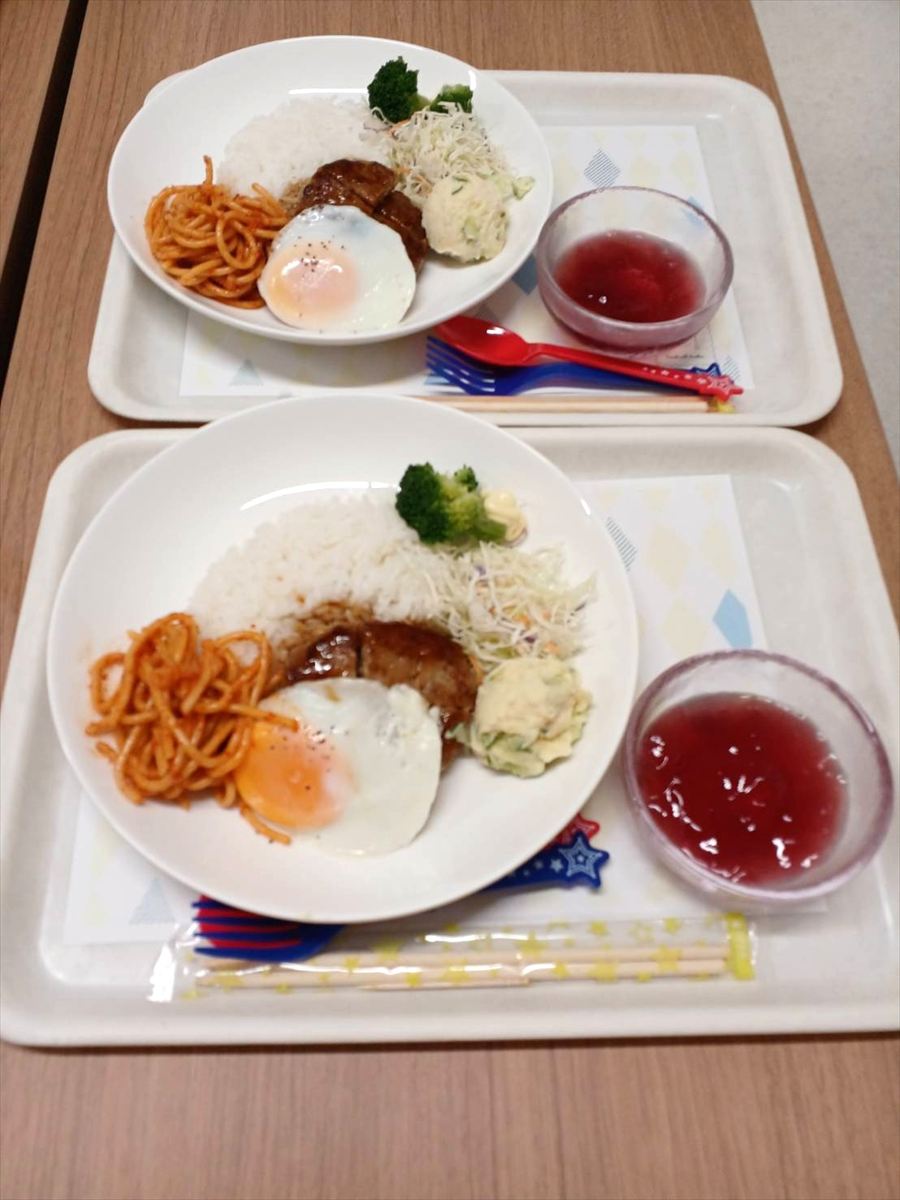 メニューはロコモコプレート・ポテトサラダ・スパゲティ・ぶどうジュレでした。