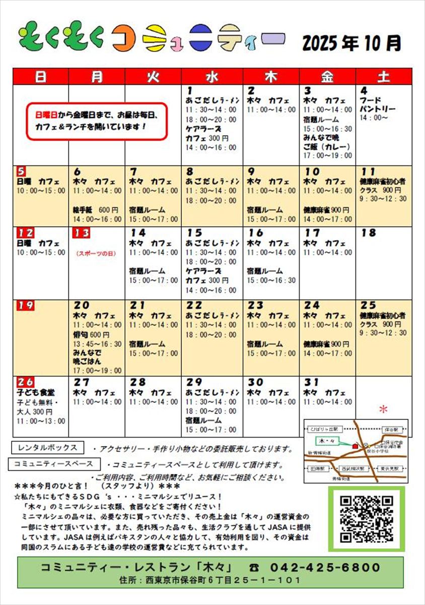 【場 所】 西東京市保谷町6-25-1 コミュニティーレストラン木・々