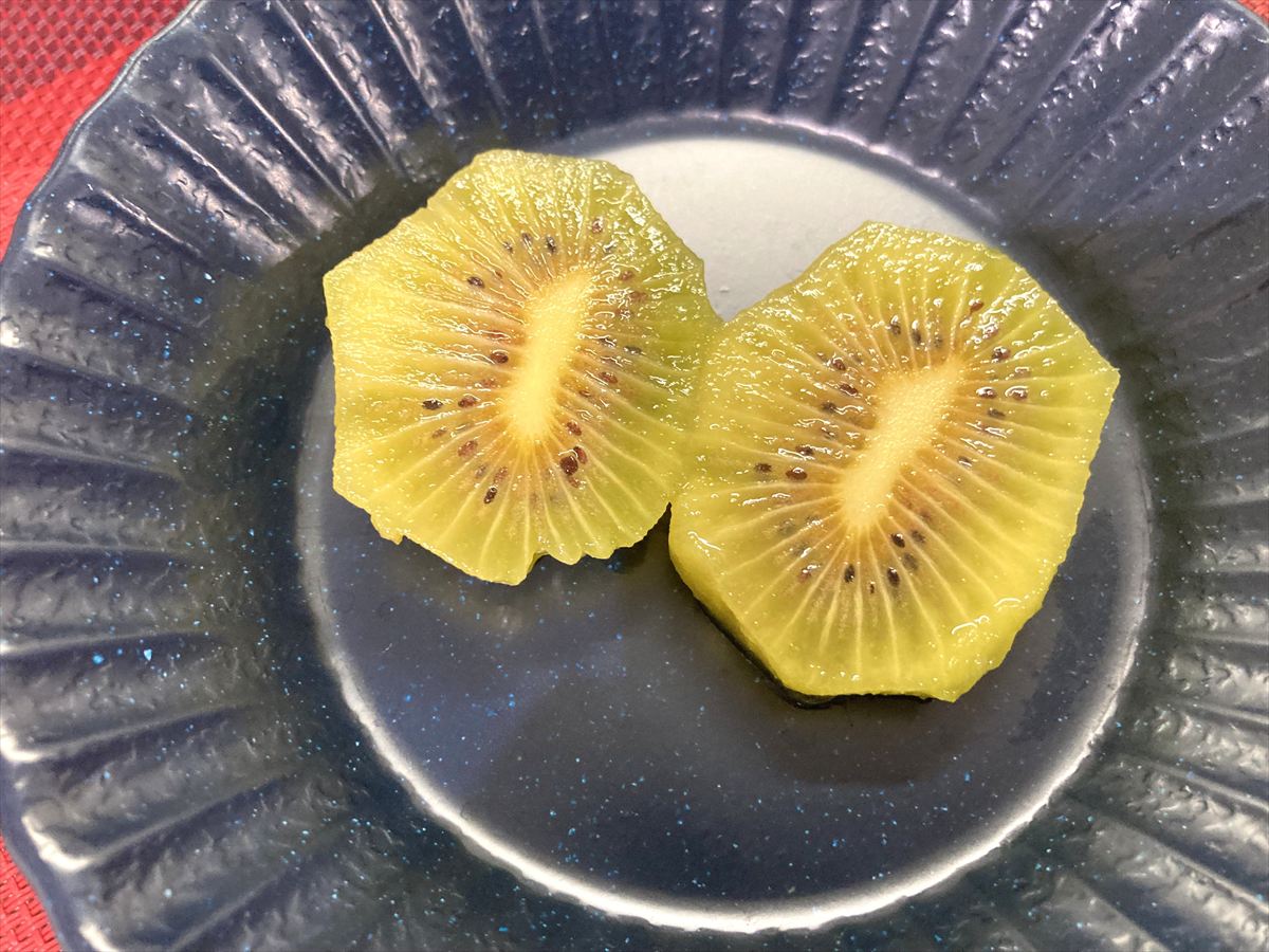 今回のコラボは、小金井産のレインボーレッド(赤いキウイ)を提供!