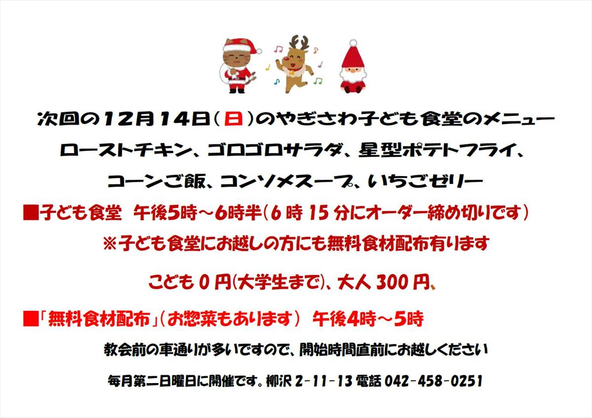 次回の12月14日(日)のやぎさわ子ども食堂のメニューは、