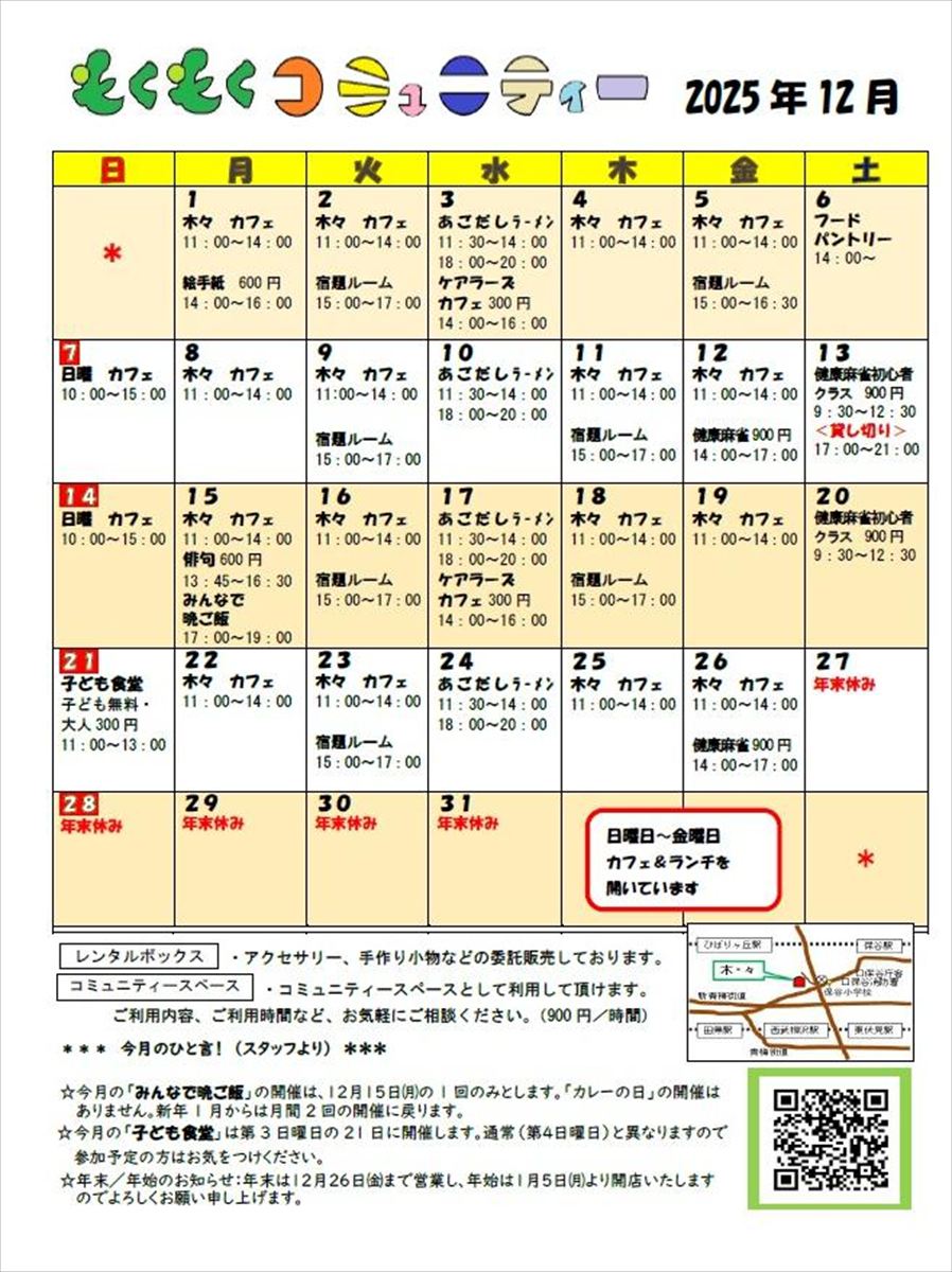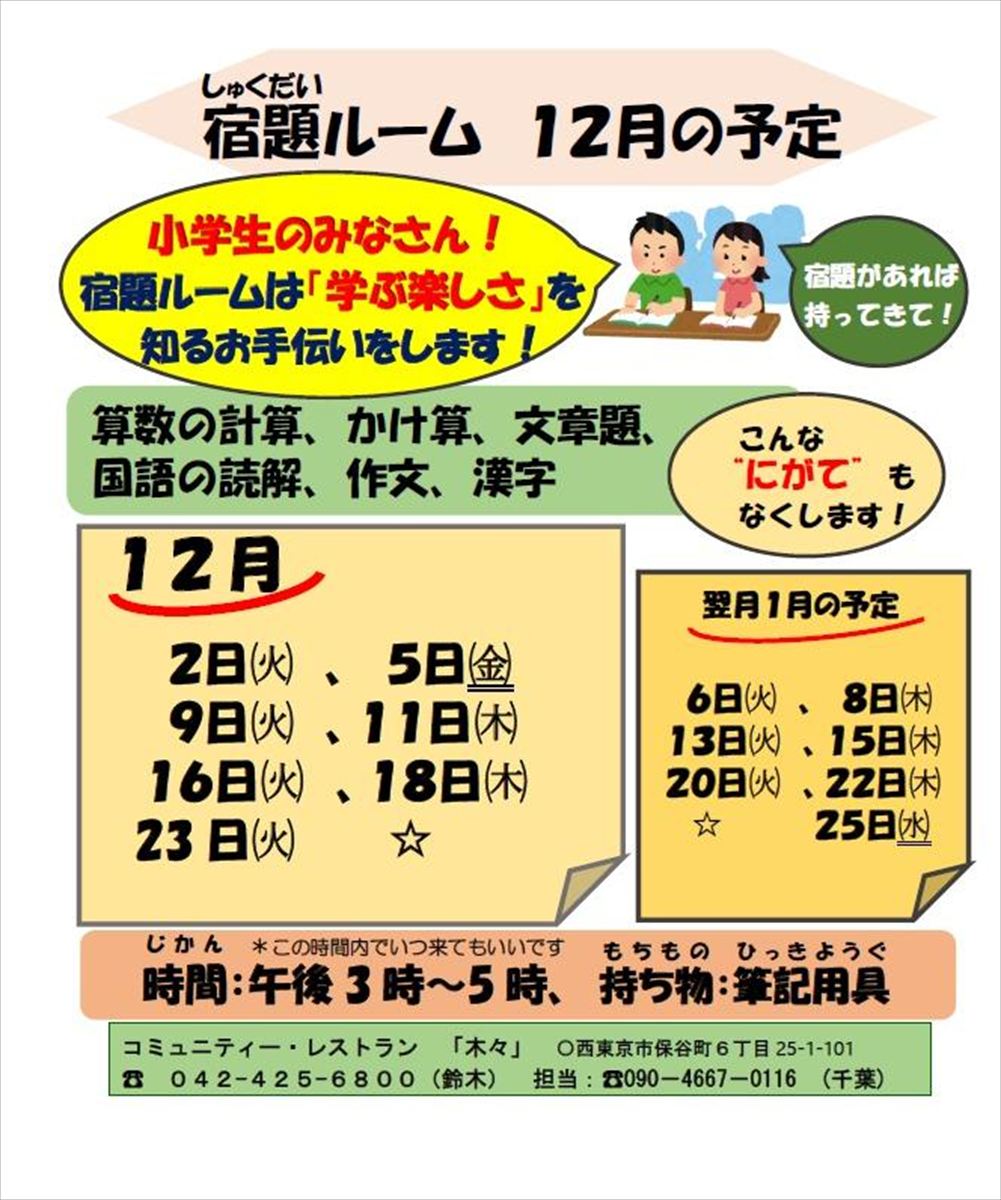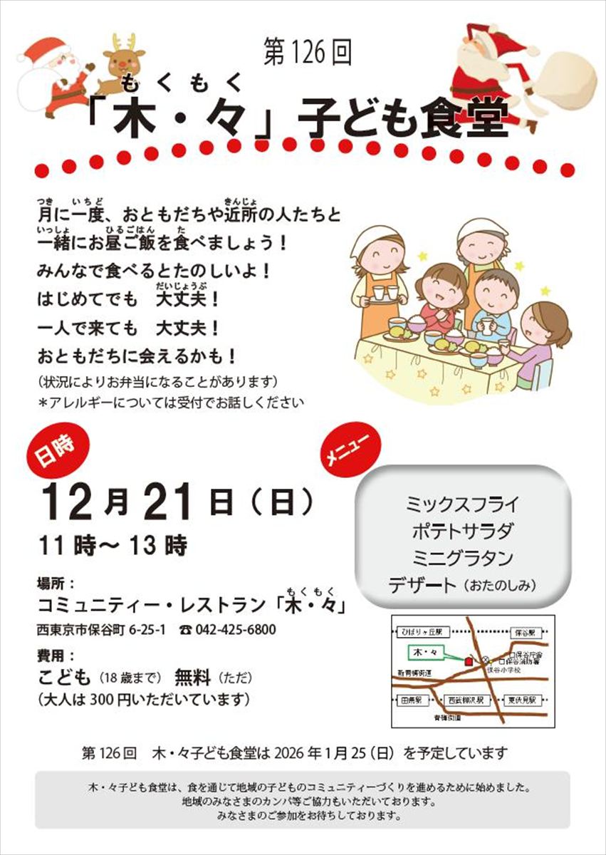 【場 所】 西東京市保谷町6-25-1 コミュニティーレストラン木・々