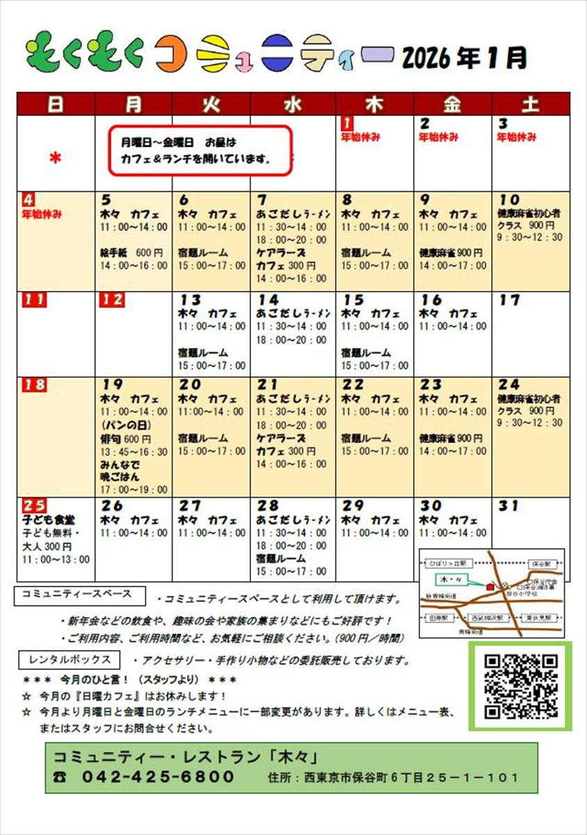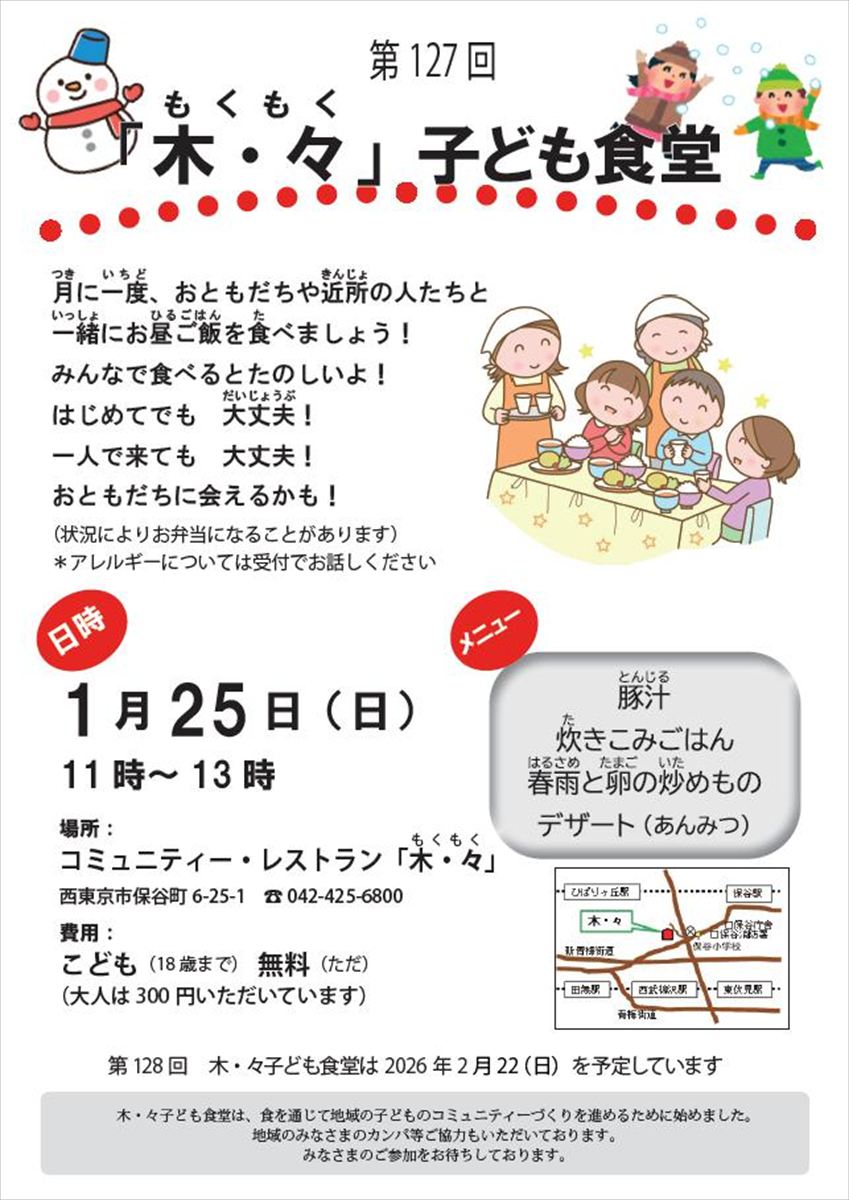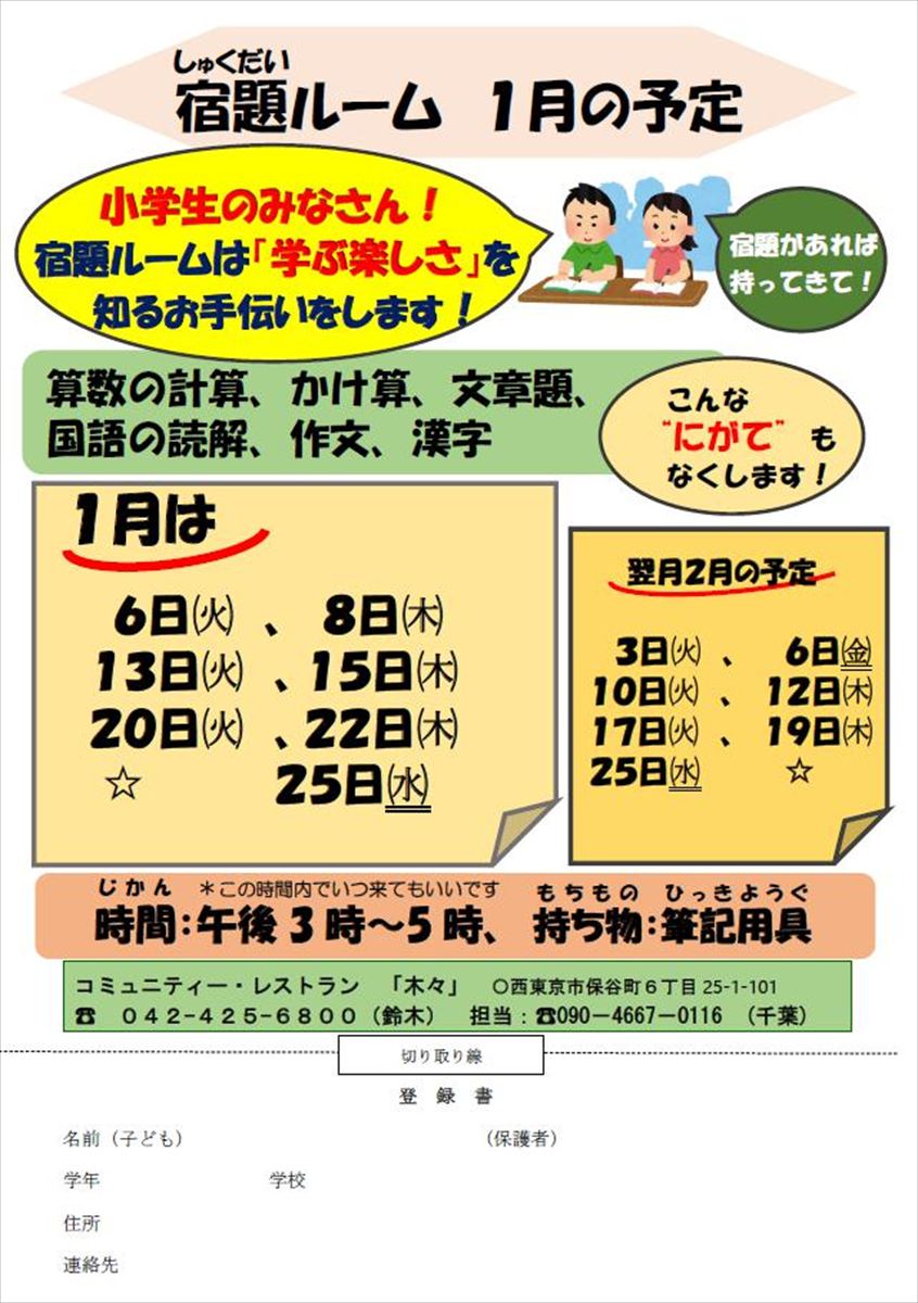 木・々子ども食堂より、1月開催のお知らせです。