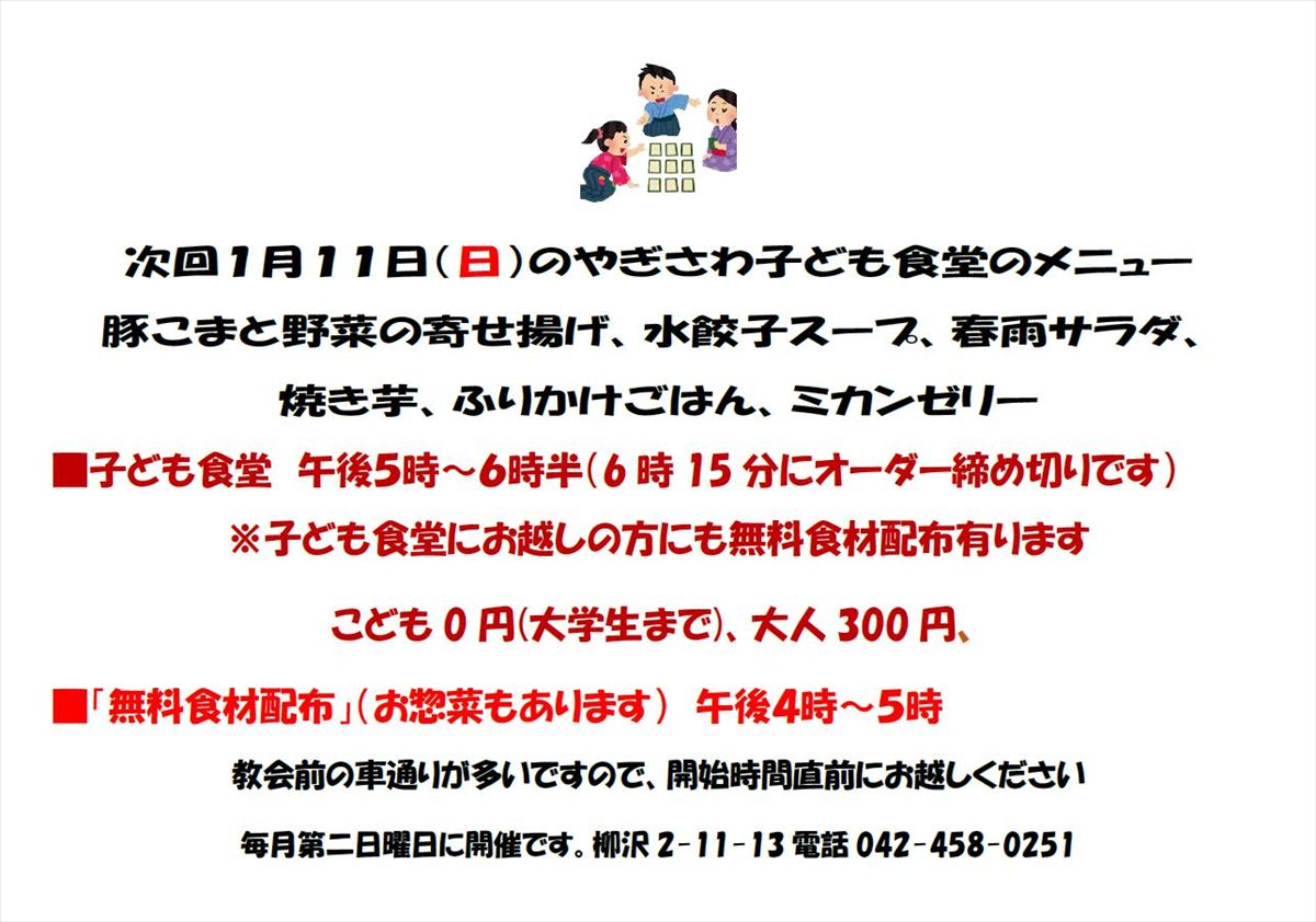 次回1月11日(日)のやぎさわ子ども食堂のメニューは、