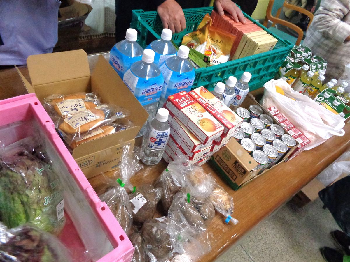 また、今回も地域住民の方のご寄付やハピモグさんの食料支援物資、JAさんからのたくさんの野菜を多くの方にお配りすることができました。