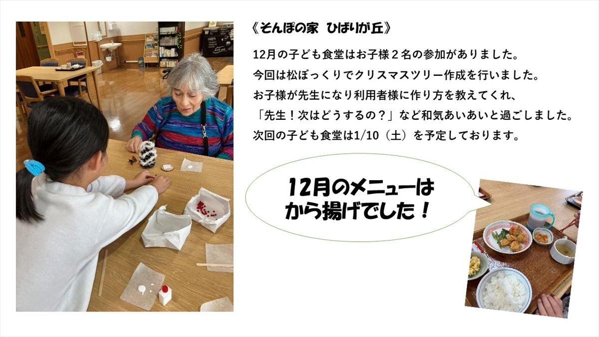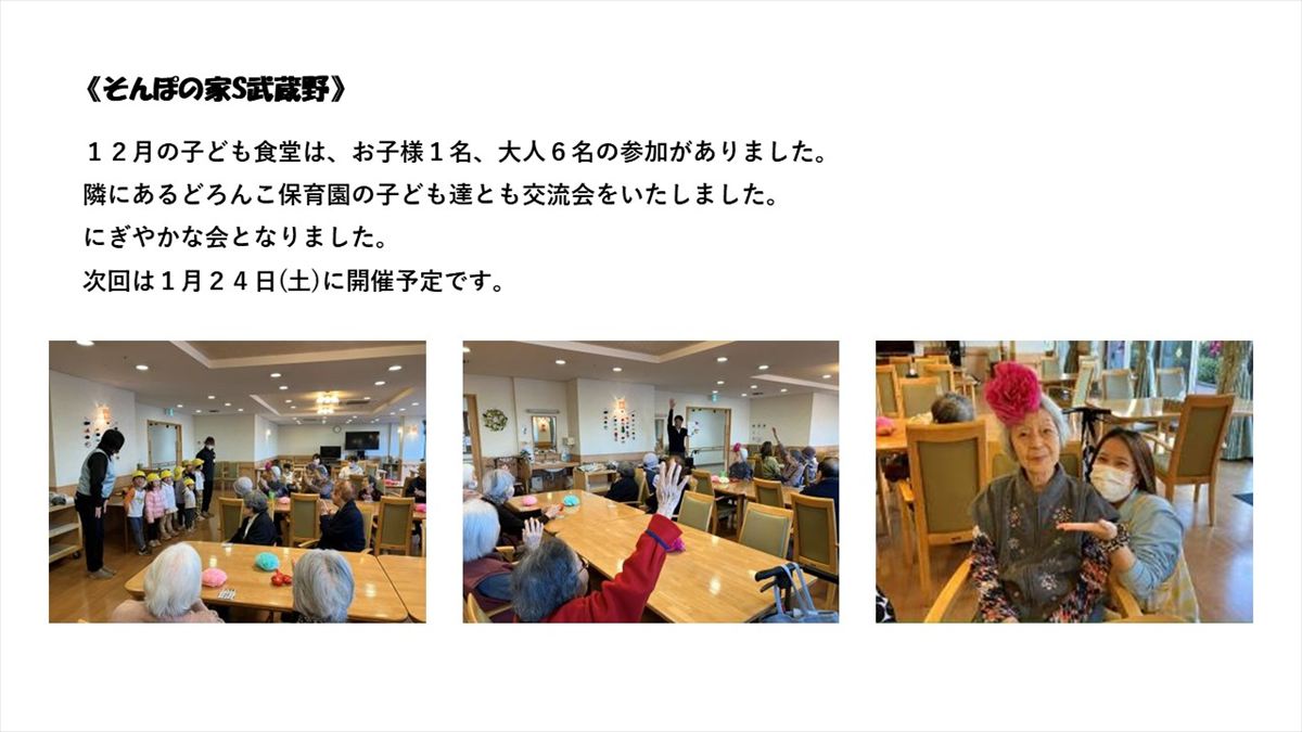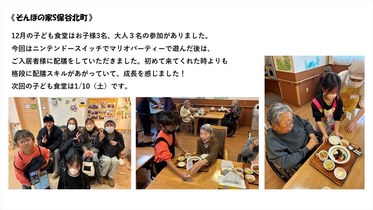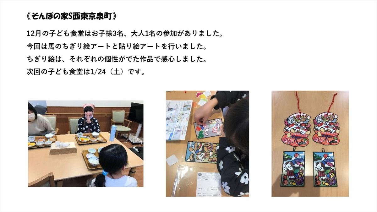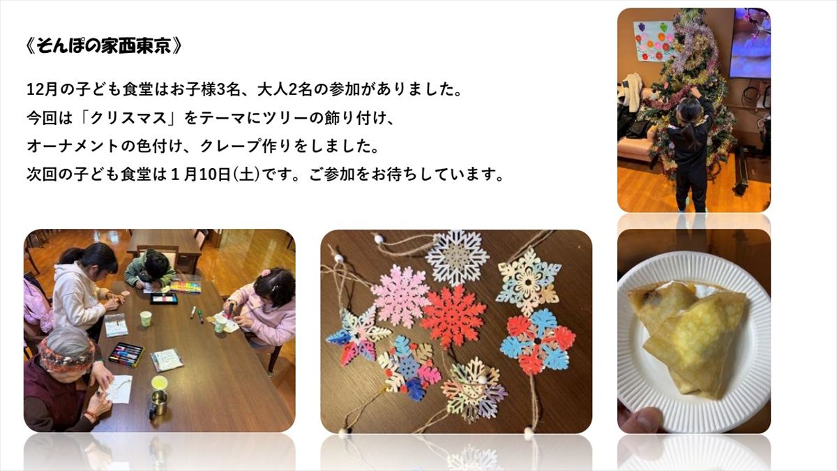 SOMPO流子ども食堂より、12月活動報告と1月開催のお知らせです😊