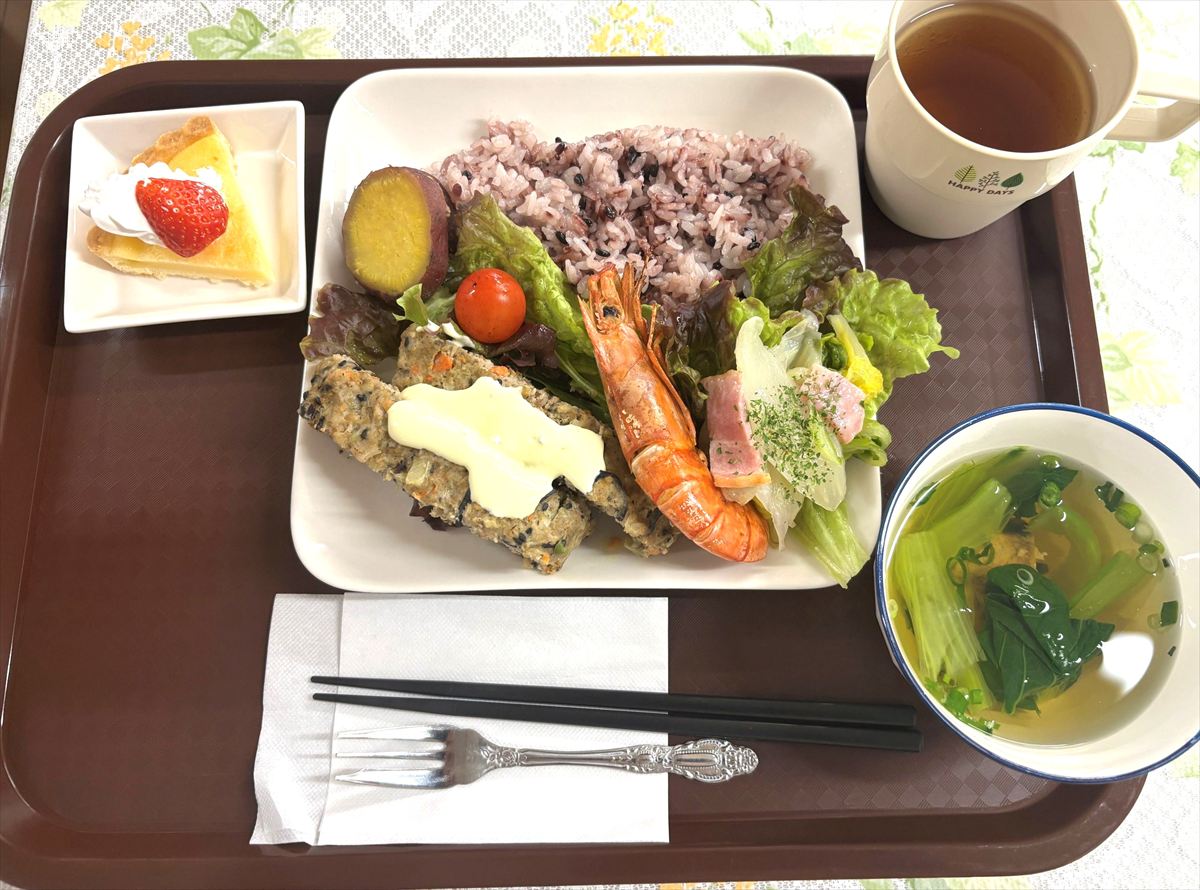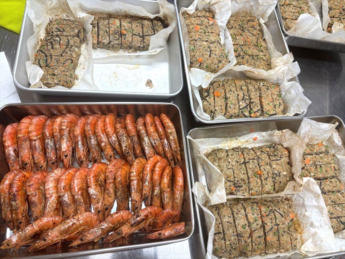 メニューは、和風ミートローフ、赤えびの塩焼き、白菜の洋風フライパン蒸し、