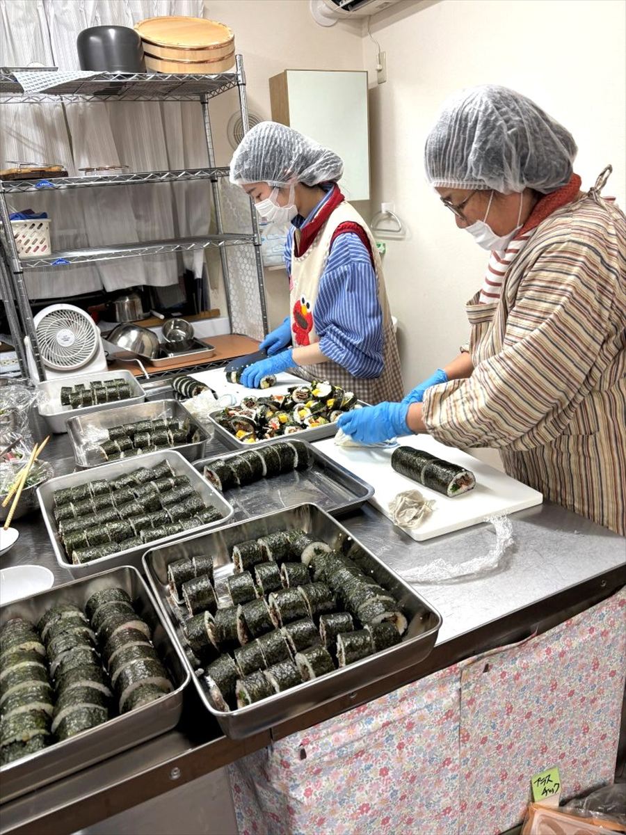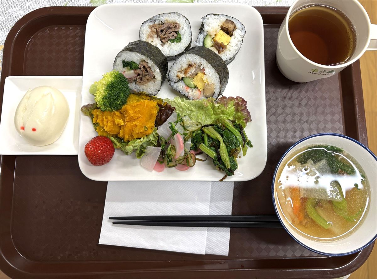 メニューは、太巻き、青菜のおひたし、かぼちゃの味噌和え、