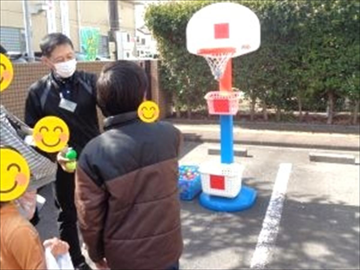 外の駐車場では、わなげとバスケットボールを行いました。