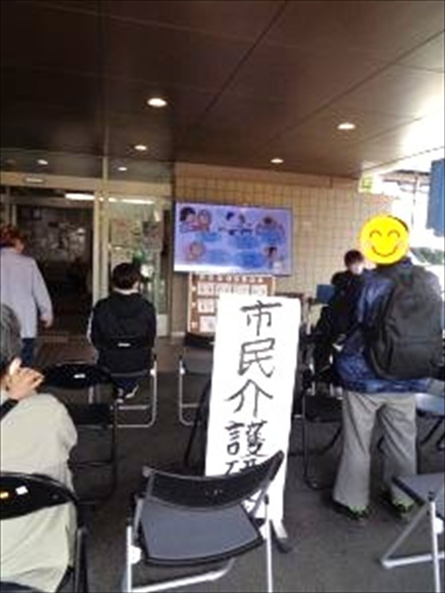 大きなテレビを使った「市民介護研修会」では、