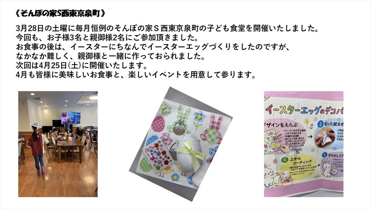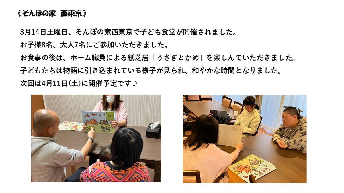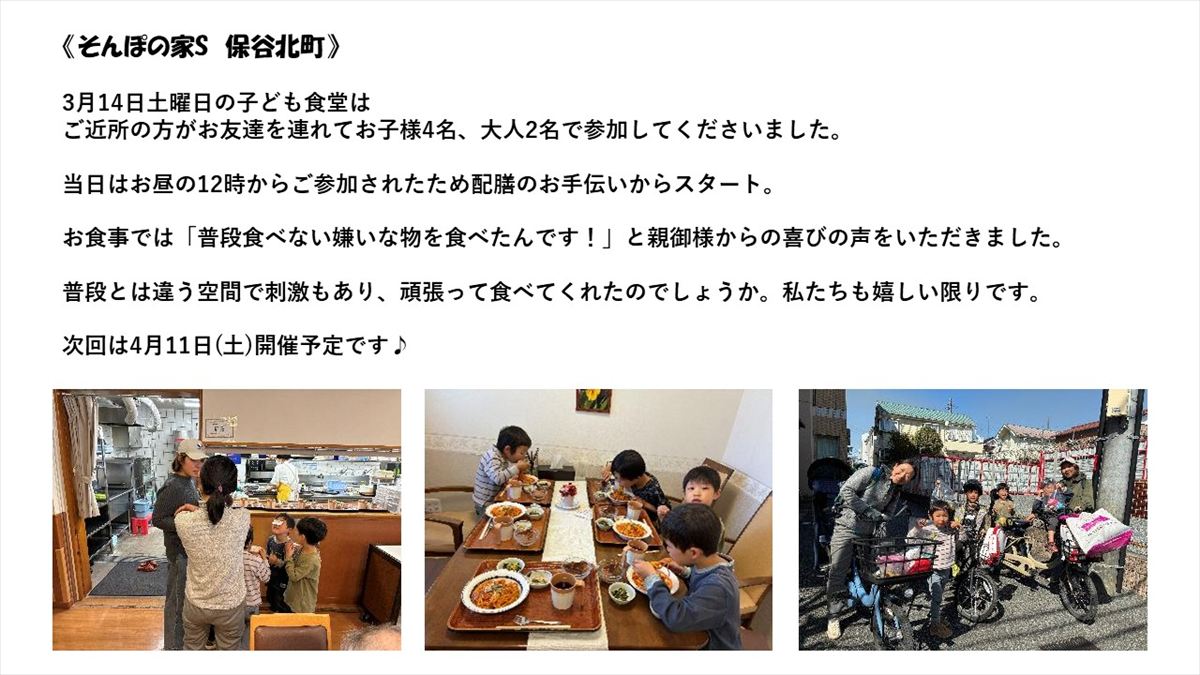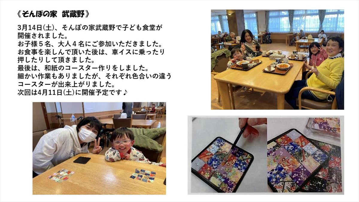 SOMPO流子ども食堂より、3月活動報告と4月開催のお知らせです😊